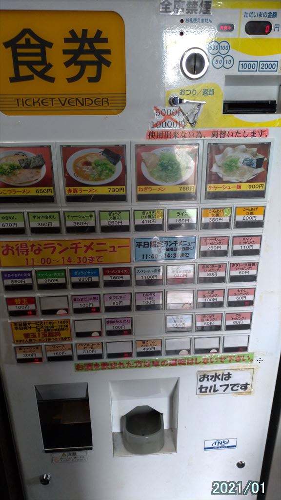 入口入ってすぐに券売機があります。スタッフさんから「食券の購入をお願いします。」と声を掛けられます。