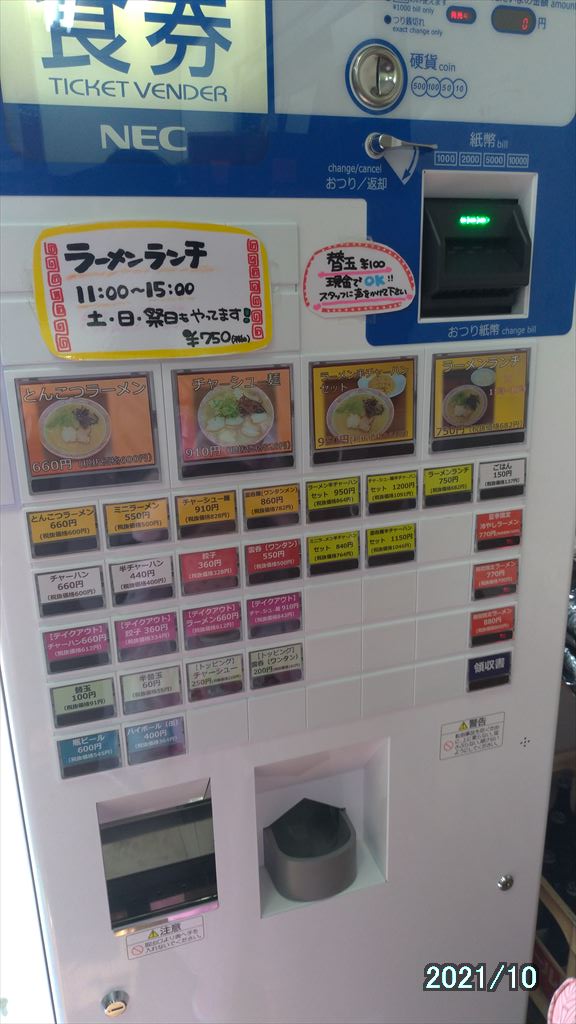 食券を購入してからスタッフさんに渡します。その際にお水はセルフです。トッピングは無料ですと説明を受けてから席に着きました。テーブルが満席でカウンターを利用しました。カウンターは椅子が固定の為小さな子には向きません。我が家はその為テーブルが空くと移動させてもらいました。