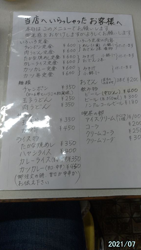 ハヤシライスとチャンポンと親子丼を注文。