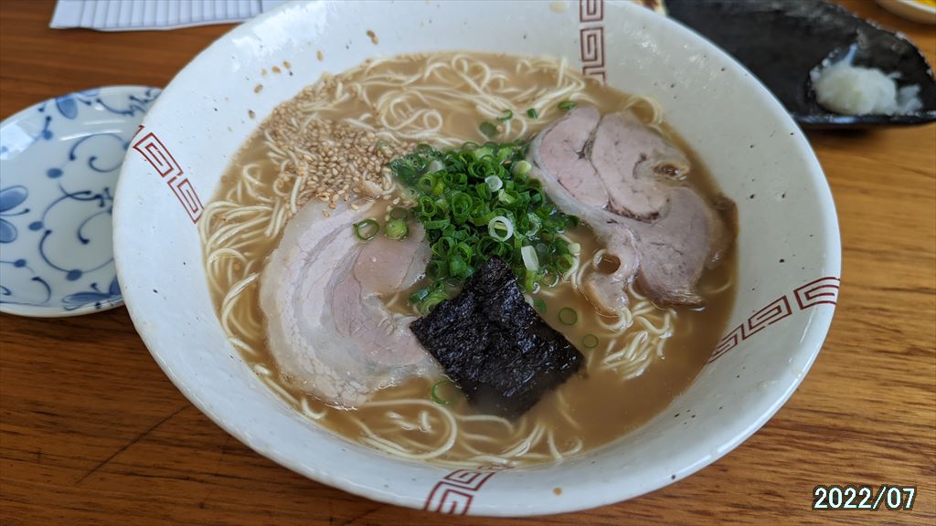 あっさり系の豚骨ラーメンで麺は細麺です。