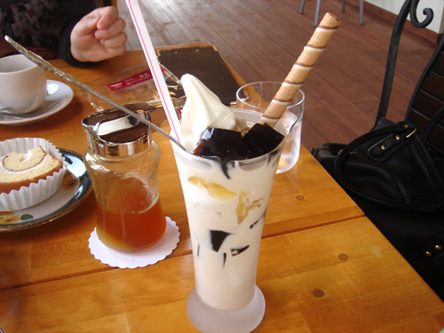 コーヒーパフェは生クリームの間にたっぷりはちみつが入ってるけど全く甘ったるくなくて嫌味が無くて上にのってるコーヒーゼリーと一緒に食べると美味しいです。