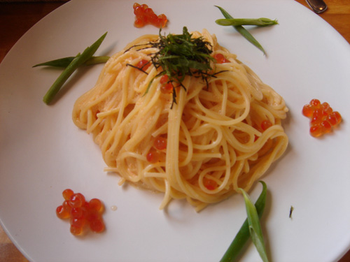 イクラと明太子のクリームパスタは盛り付けセンスもいいしクリーミーで生臭くなくて美味しいです。