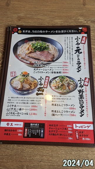 元ラーメン ¥700 ふくや太一 ¥880 お子様とんこつラーメン ¥380 |