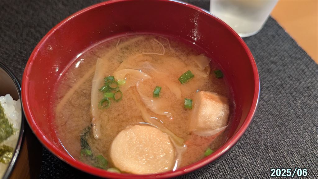 お水とお漬物もセルフで用意しカウンター席に着席し待っているとご飯とお味噌汁が提供されます。