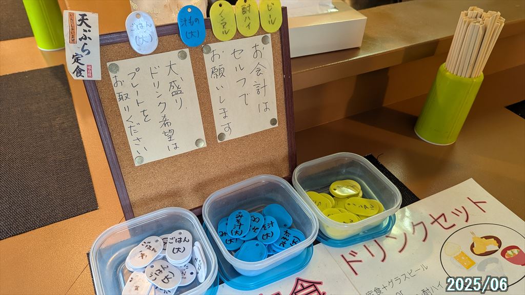 ご飯やお味噌汁の大盛りを希望の際はプレートを取ります。