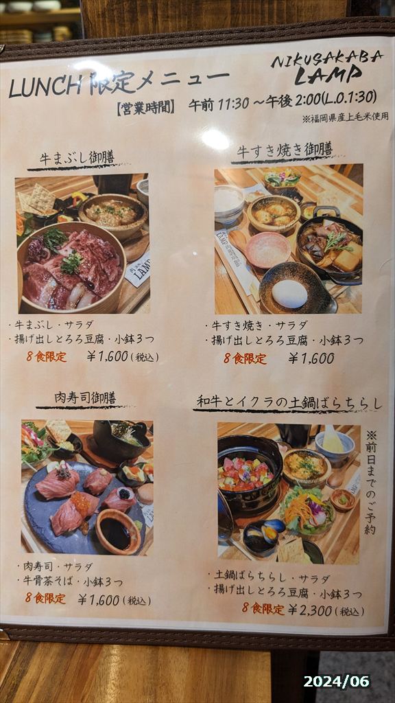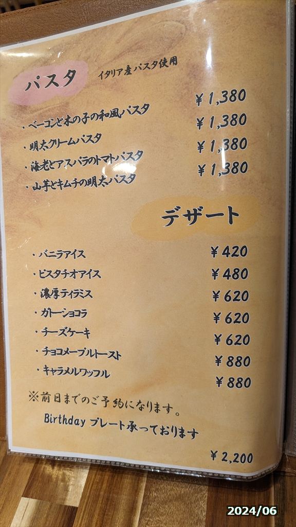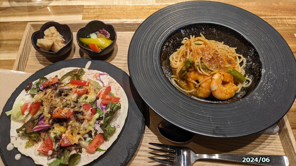 LAMPタコス&選べるパスタ・牛まぶし御膳を注文。