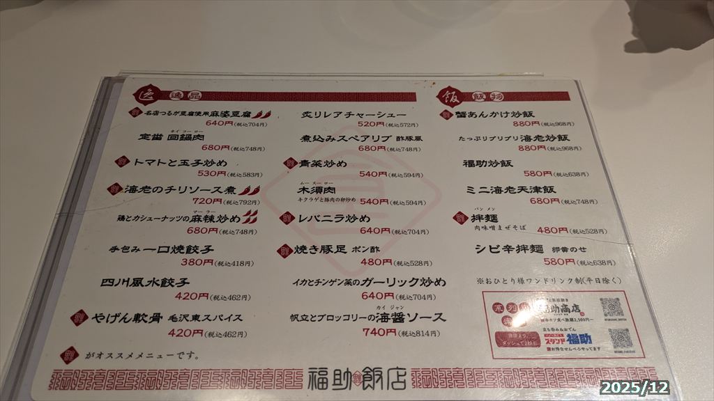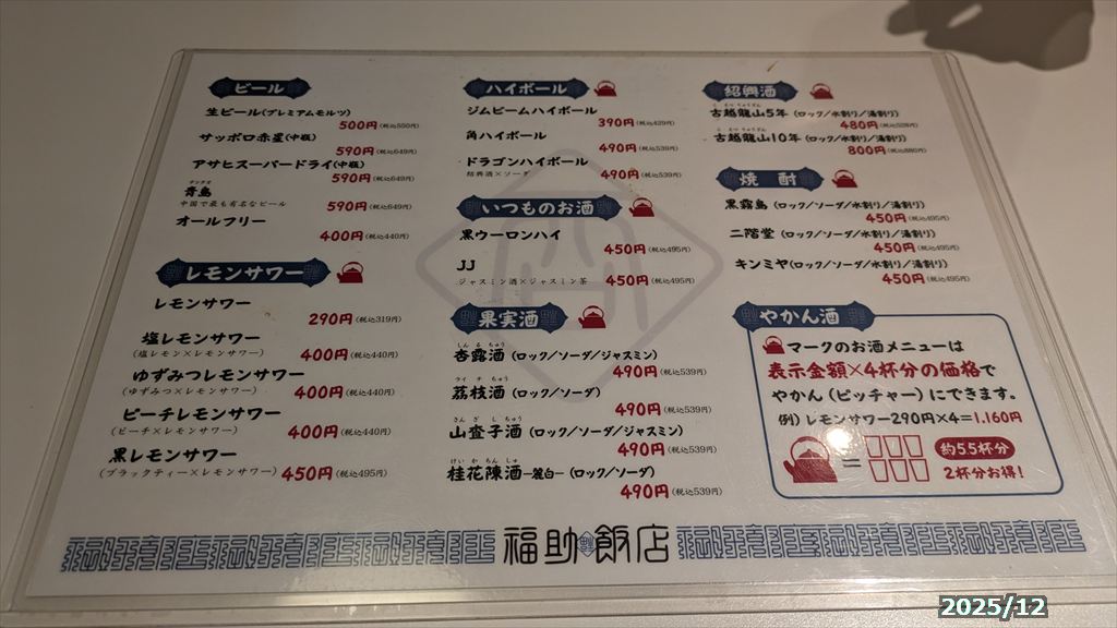 > 北九州市 : ラーメン・ギョーザ・中華 > 小皿中華福助飯店